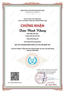 🌸🌸🌸 Xin được vinh danh và chúc mừng thành tích xuất sắc của em Đàm Minh Khang – Lớp 5E2 – Trường Tiểu học Hải Yên